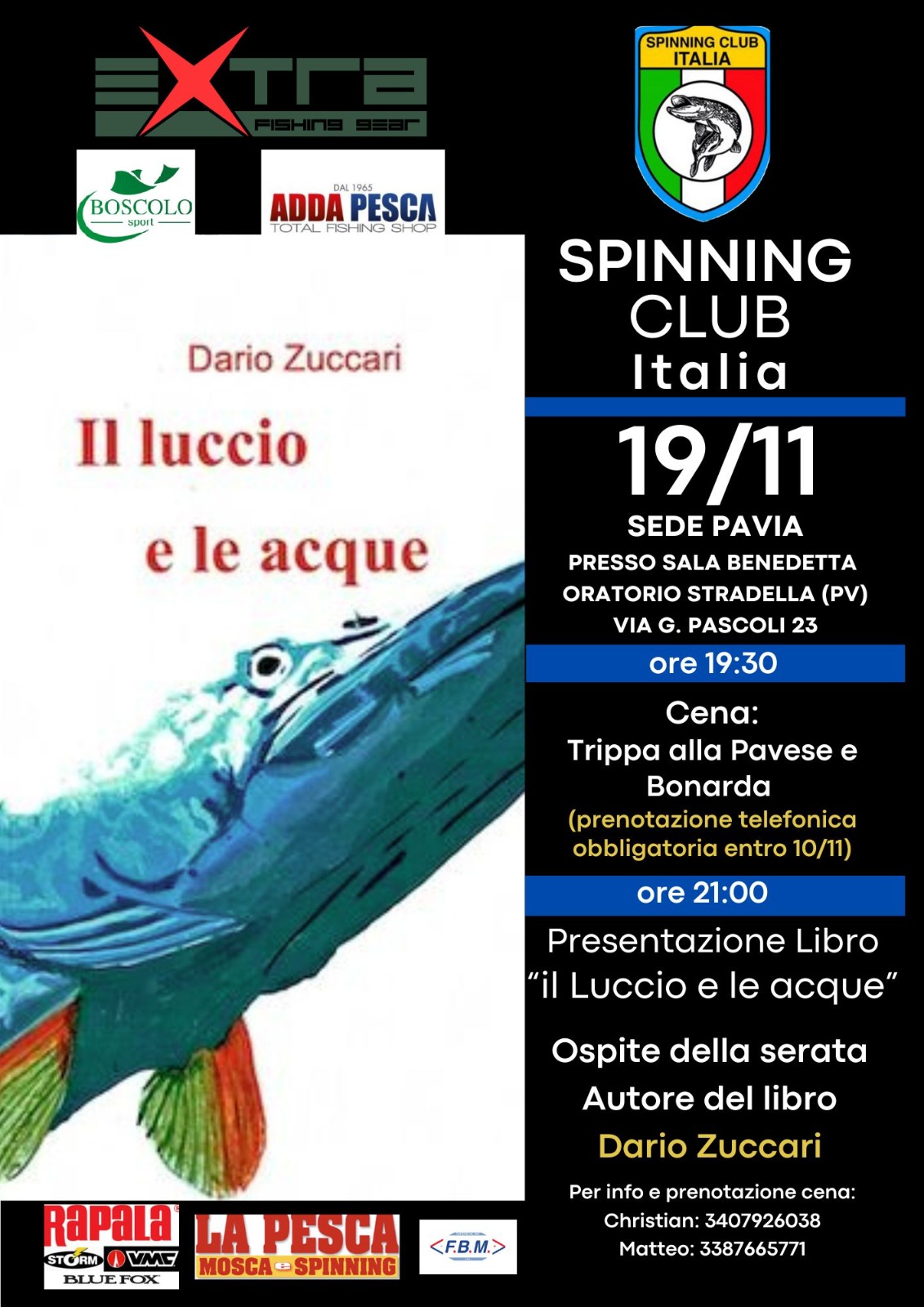 Amici pescatori, la sede Spinning Club Italia di Pavia vi invita mercoledì 19 novembre presso la Sala Benedetta dell’Oratorio di Stradella alla presentazione del libro “Il Luccio e le Acque”. I soci Christian ed Edo