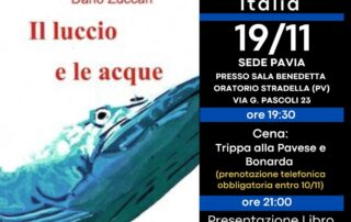 Amici pescatori, la sede Spinning Club Italia di Pavia vi invita mercoledì 19 novembre presso la Sala Benedetta dell’Oratorio di Stradella alla presentazione del libro “Il Luccio e le Acque”. I soci Christian ed Edo introdurranno la serata raccontando le